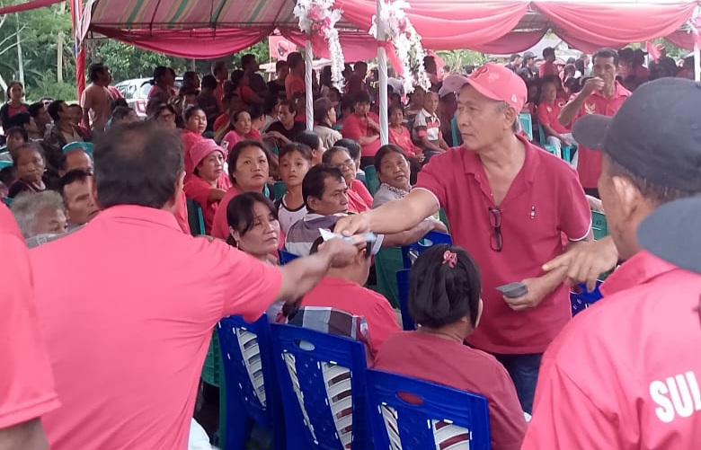 “Ini foto-foto dan video bagi-bagi uang dari kerabat WT. Itu sudah jelas-jelas terlihat, sudah jelas terang-terangan mereka bagi-bagi uang, yakni TH alias Tonny itu ipar dari WT dan DT alias Djoni saudara kandung WT,” ungkap sumber resmi media ini sembari menunjukkan foto-foto dan video.