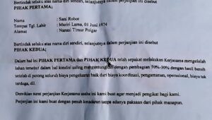 Namun, ironisnya, Direktur PT Ratok Mining, Ali Wibisono (warga Surabaya), justru meneken Perjanjian Kerja Sama (PKS) perorangan dengan Sanny Robot (warga Nanasi Timur Poigar) pada 12 November 2025.